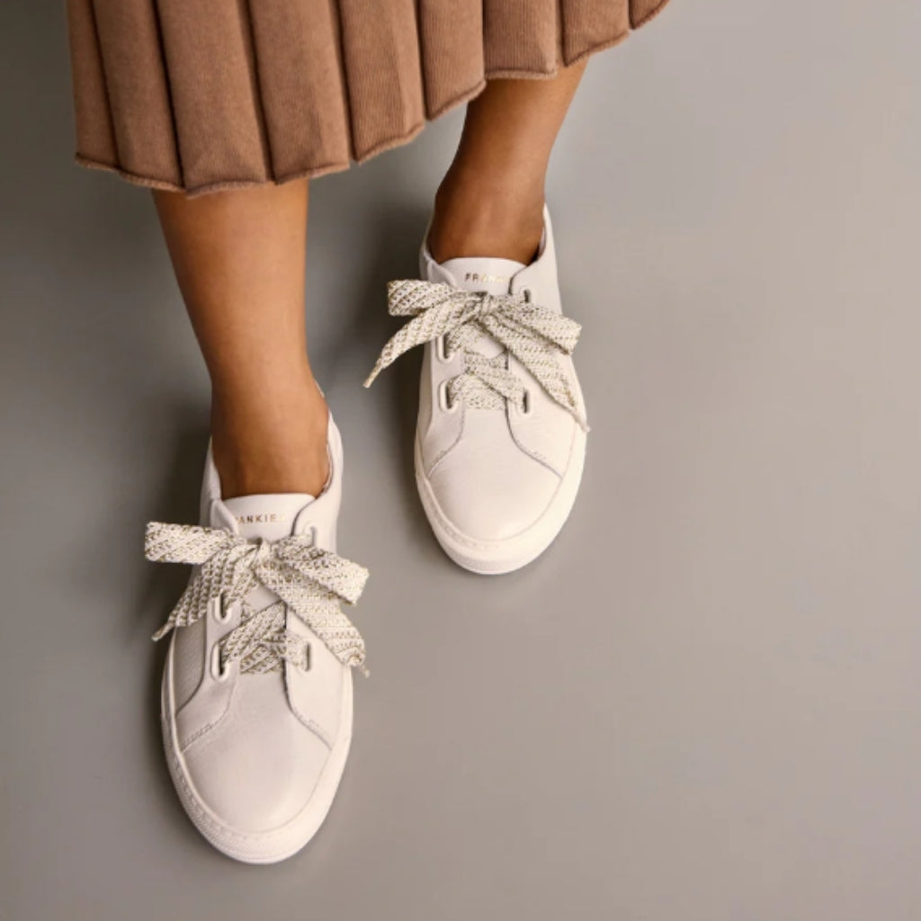 The Frankie4 Mya in White Chalk is a stylish and supportive sneaker with a podiatrist-designed footbed for heel, arch, and forefoot support. Offering a customizable fit and lightweight construction, Mya ensures comfort and style with every step.