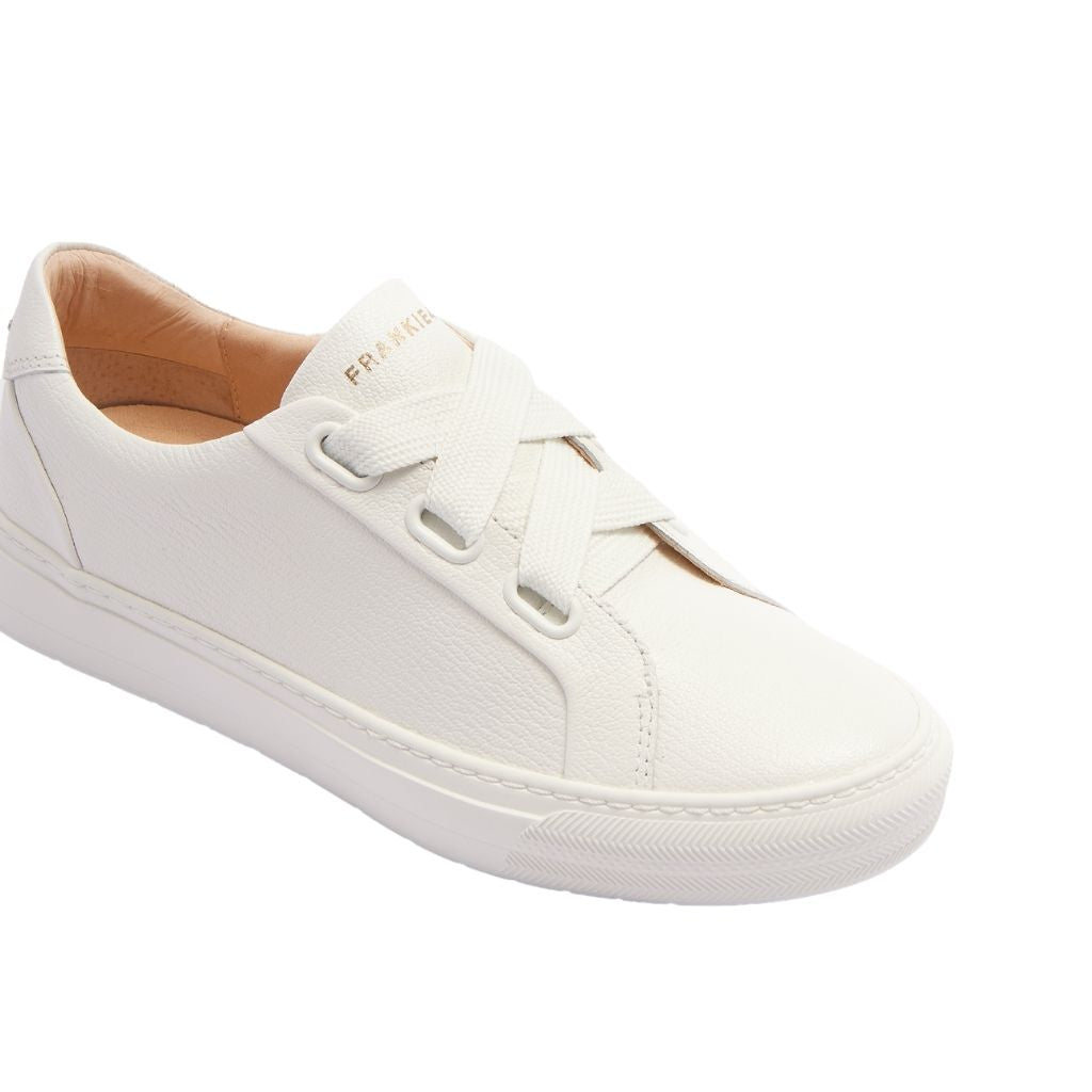 Elevate your everyday style with Mya sneakers in crisp white tumbled leather. This modern silhouette features sleek lines and textured leather for a fresh, versatile look. Large oval shoelace eyelets provide a unique design detail and make slipping them on a breeze, while the included statement laces let you personalise your vibe. With lightweight construction and a podiatrist-designed footbed, Mya delivers unmatched comfort and support. A perfect choice for effortless, contemporary style.